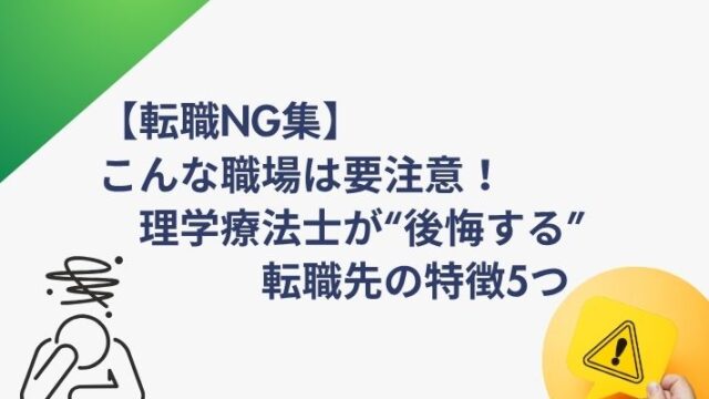 転職ノウハウ 【転職NG集】こんな職場は要注意!理学療法士が“後悔する”転職先の特徴5つ 2025年5月28日 はる坊 https://harubobase.com/wp-content/uploads/2025/09/8c7309876959c188c0ea46e564815408.png 理学療法士はる坊ブログ