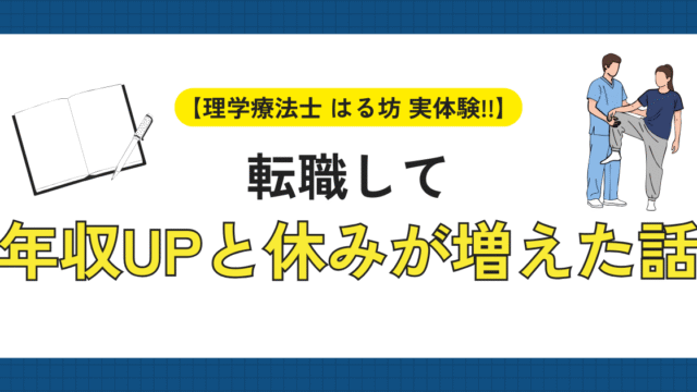 転職ノウハウ 理学療法士が転職して年収UPと休みが増えた話【実体験】 2025年10月4日 はる坊 https://harubobase.com/wp-content/uploads/2025/09/8c7309876959c188c0ea46e564815408.png 理学療法士はる坊ブログ